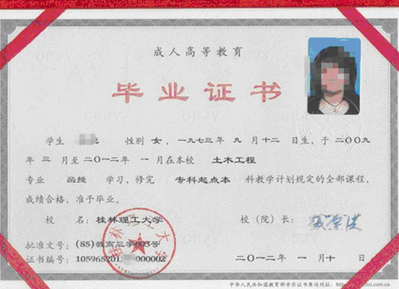 桂林理工大学函授专升本毕业证书